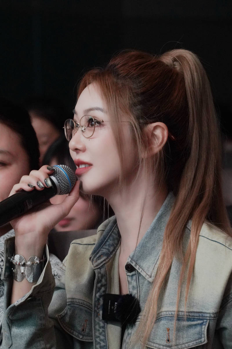 牛仔外套从不是单调的休闲符号,薛凯琪的搭配里藏着精准的时尚巧思。她选择的修身款牛仔外套保留了经典的金属按扣设计,却在袖口加入细腻毛边,消解了牛仔的粗犷感,与内搭的简约吊带形成“刚柔平衡”。高腰剪裁的设计巧妙拉高腰线,配合利落的高马尾,让身形比例在视觉上更显修长,互动时马尾随笑意晃动的弧度,为牛仔造型注入了灵动生命力。这种搭配摒弃了过度装饰,正如她本人的状态般松弛自然,蹲在台边与粉丝握手时,随手整理裙摆的动作,让牛仔外套的随性特质更显真实。